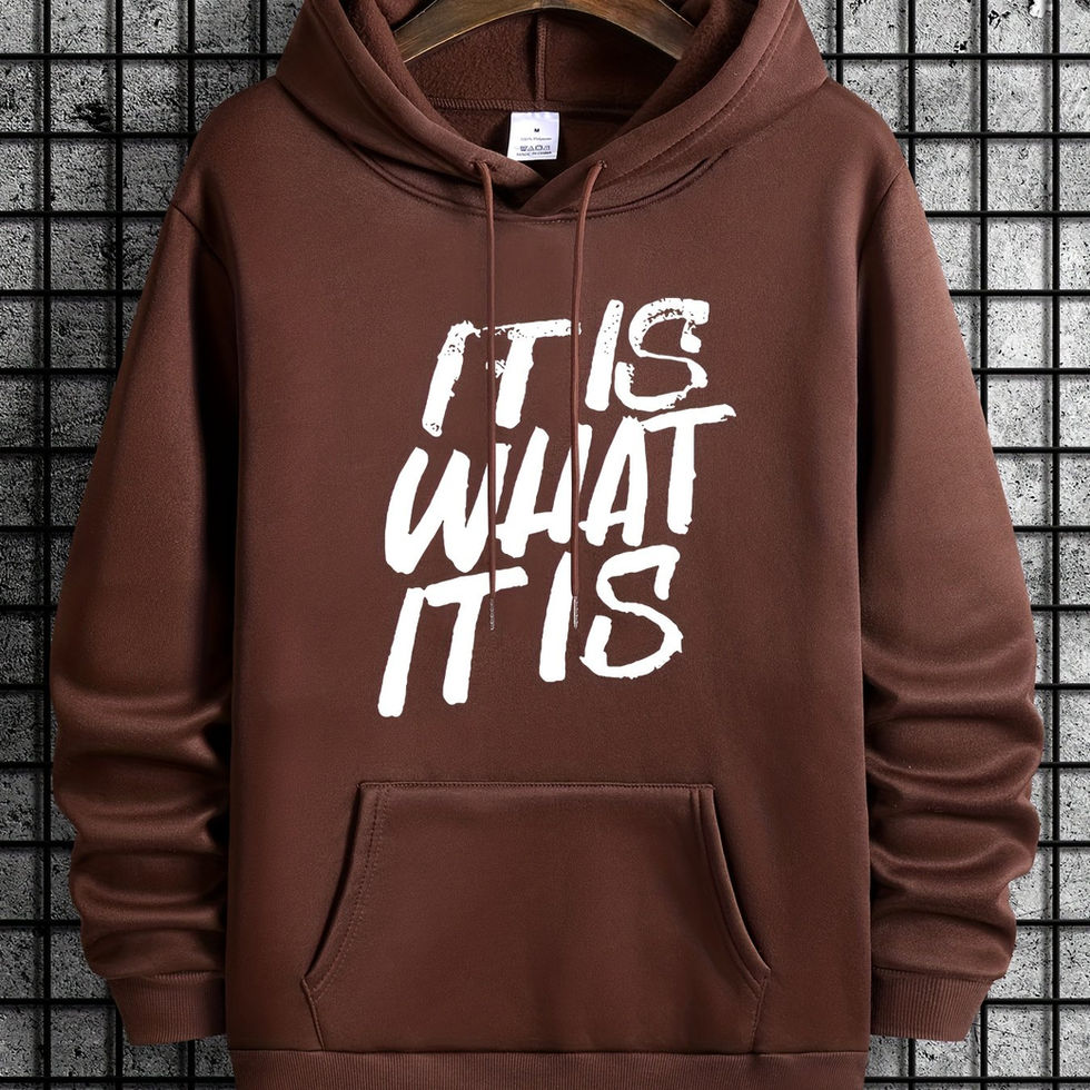 Men's Casual Beige Hoodie with "IT IS WHAT IT IS" Print - Soft Polyester, Loose