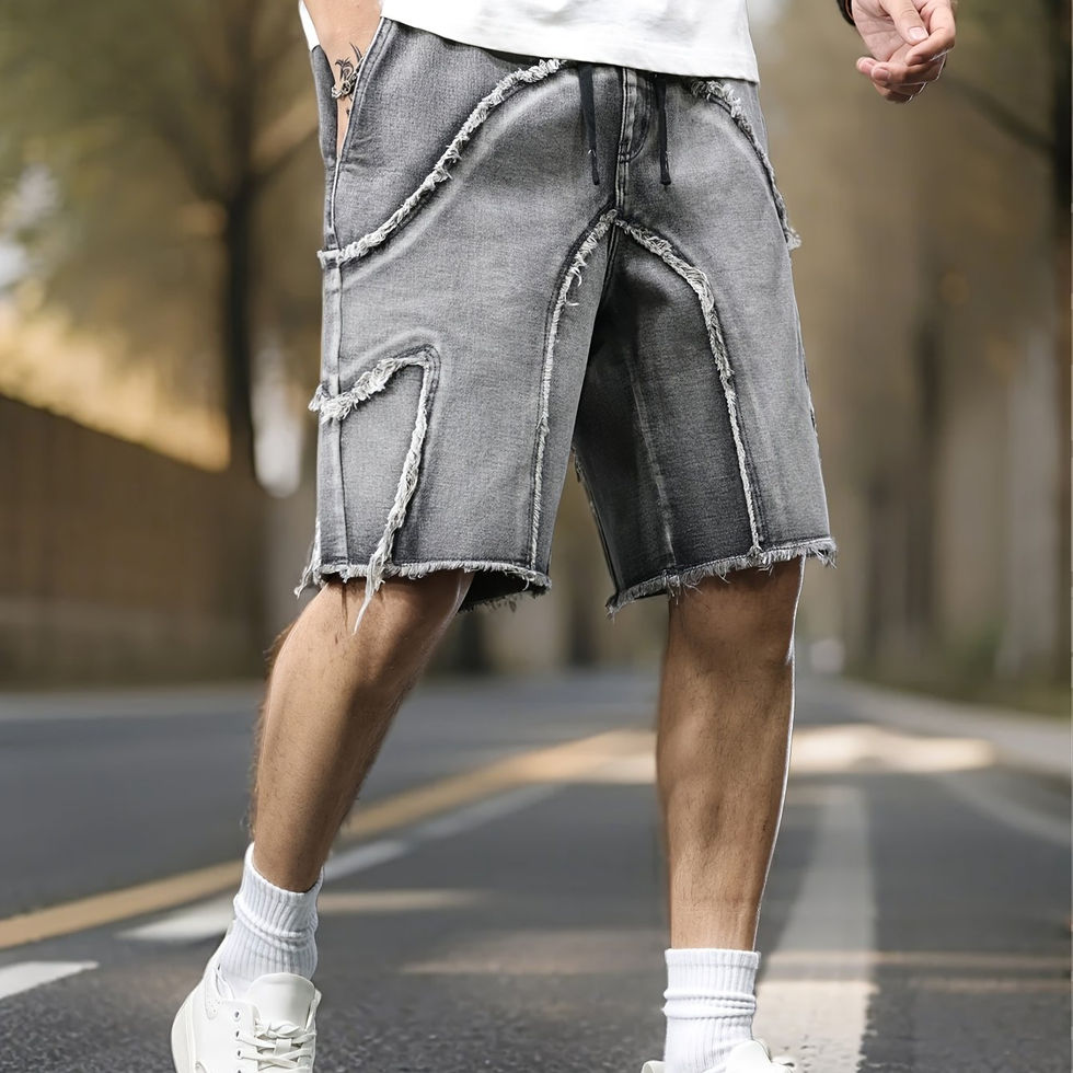 Men'S Casual Loose Fit Denim Shorts with Frayed Edges - Drawstring Waist, Knee-