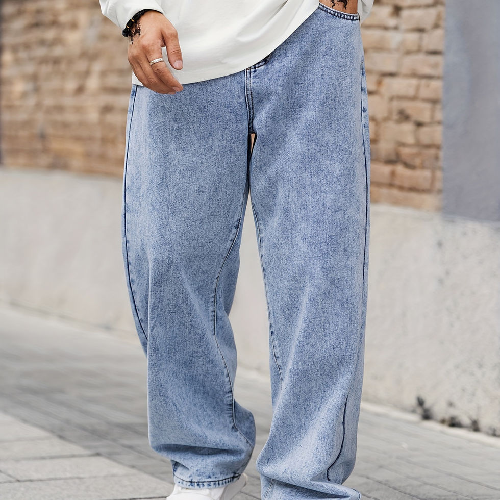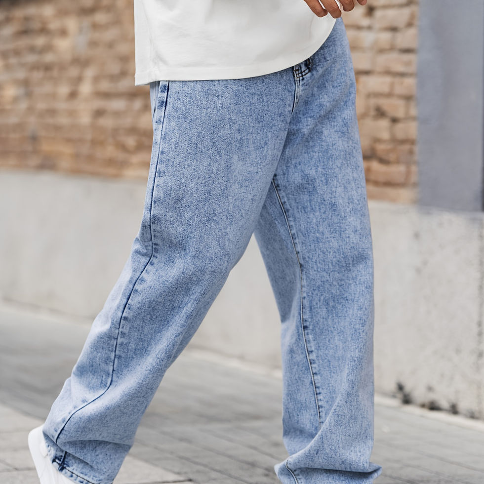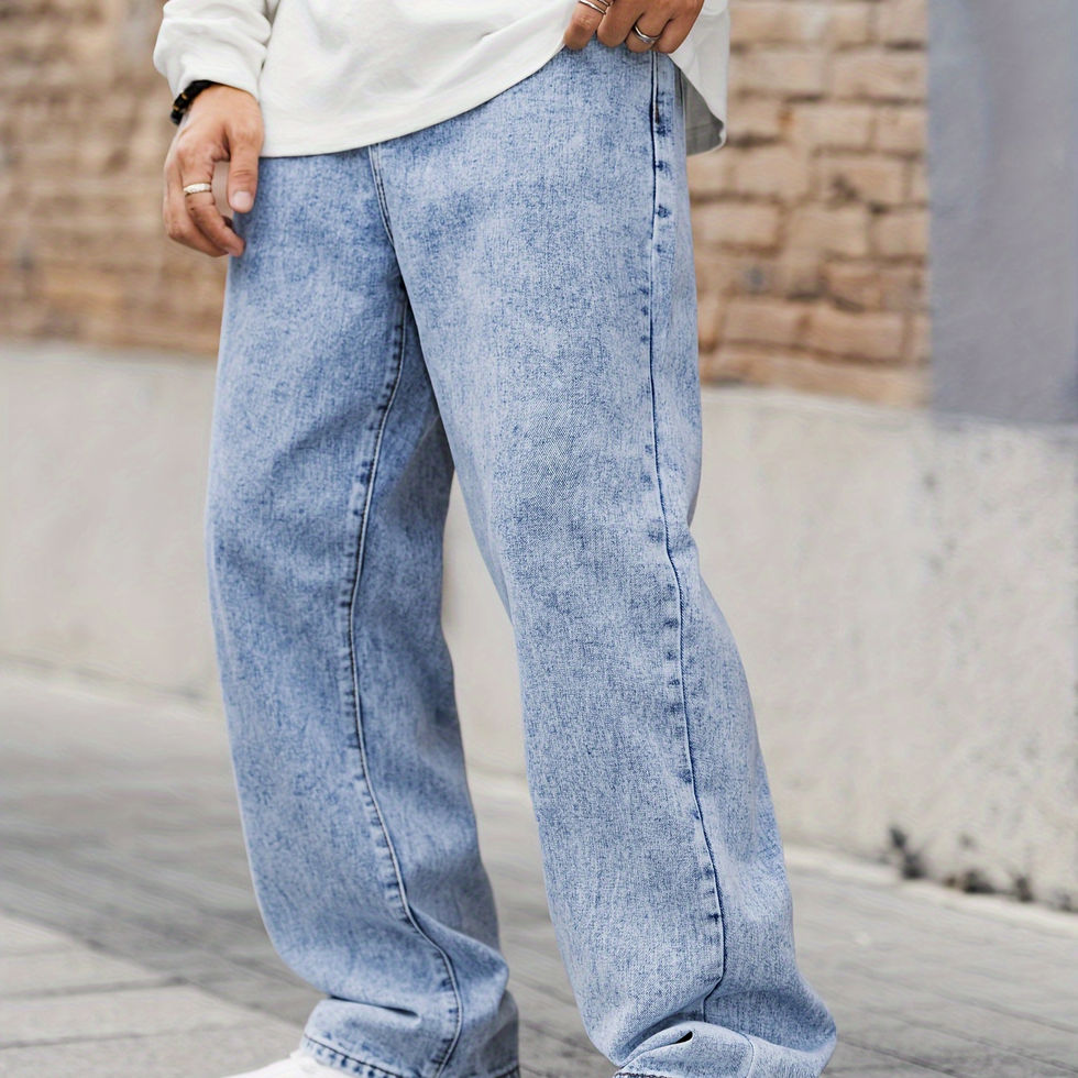 Men's Classic Jeans - Non-Stretch Wide-Leg Relaxed Fit Pants, Machine Washable
