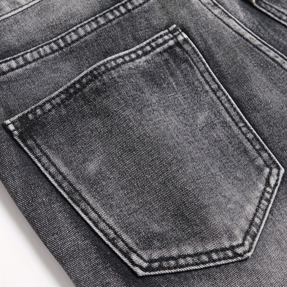 Men's Distressed Denim Shorts with Skull & Playing Card Pocket Patches - Frayed