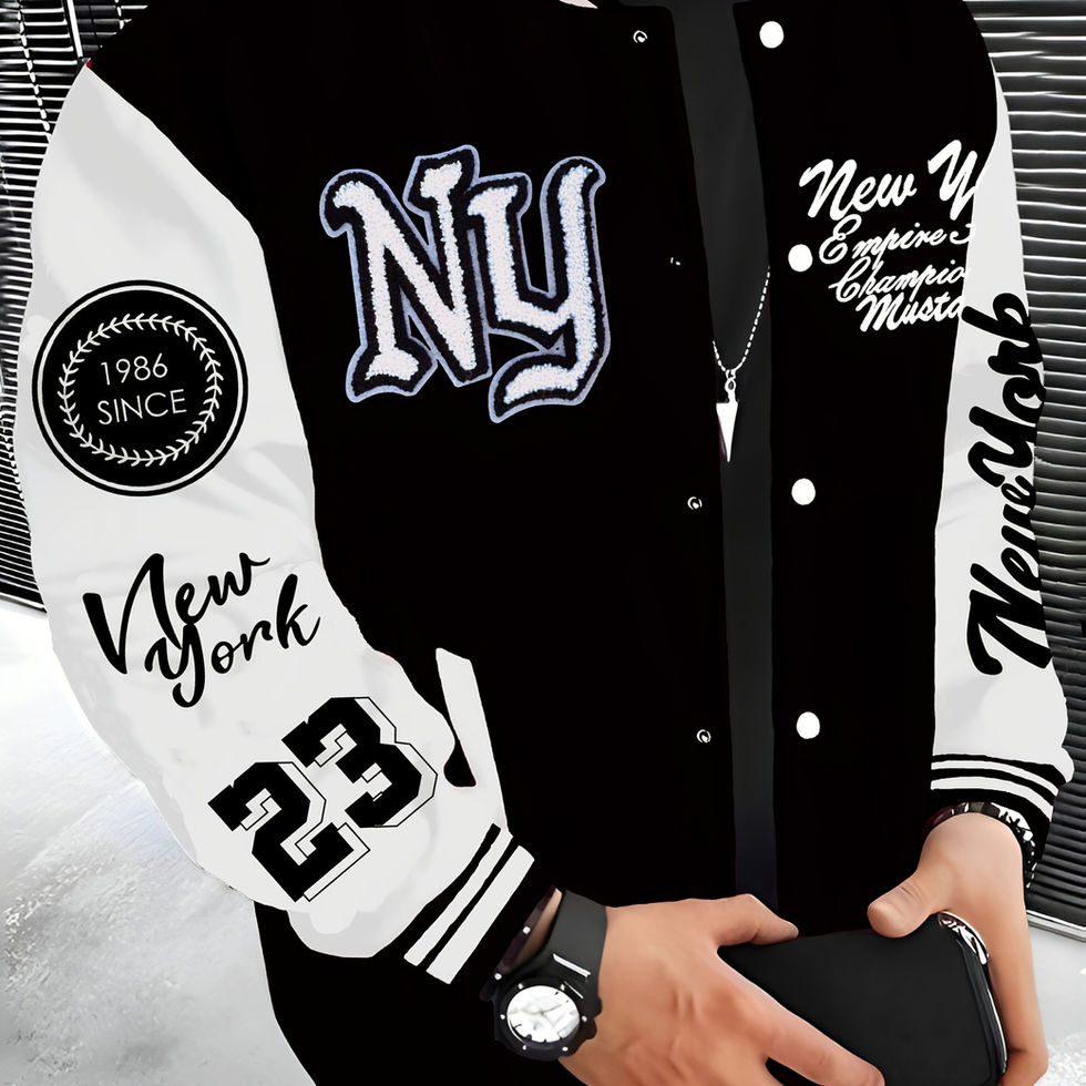Men's Lightweight Warm Fleece-Lined Baseball Jacket with New York NY Embroidere