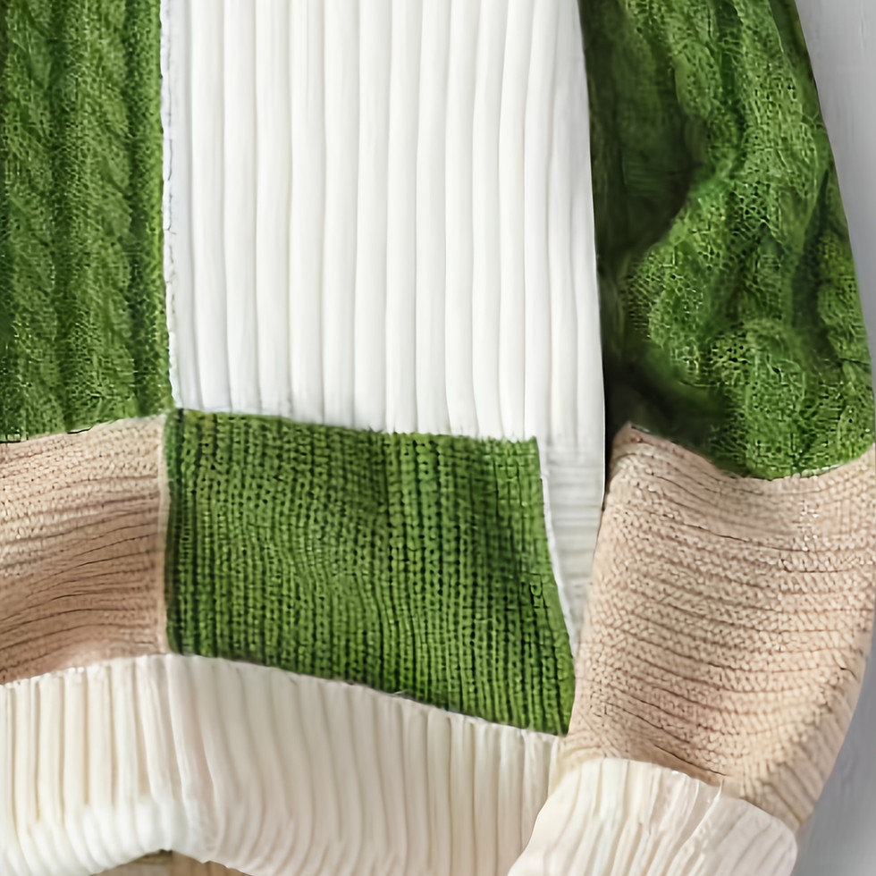 Men's Retro Color Block Sweater - Soft Warm All-Season Knit Sweater with Green/