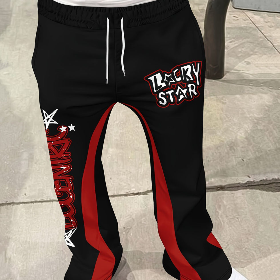 Men'S Retro Flared Pants - Black with Red Accent - Loose Fit Streetwear Trouser