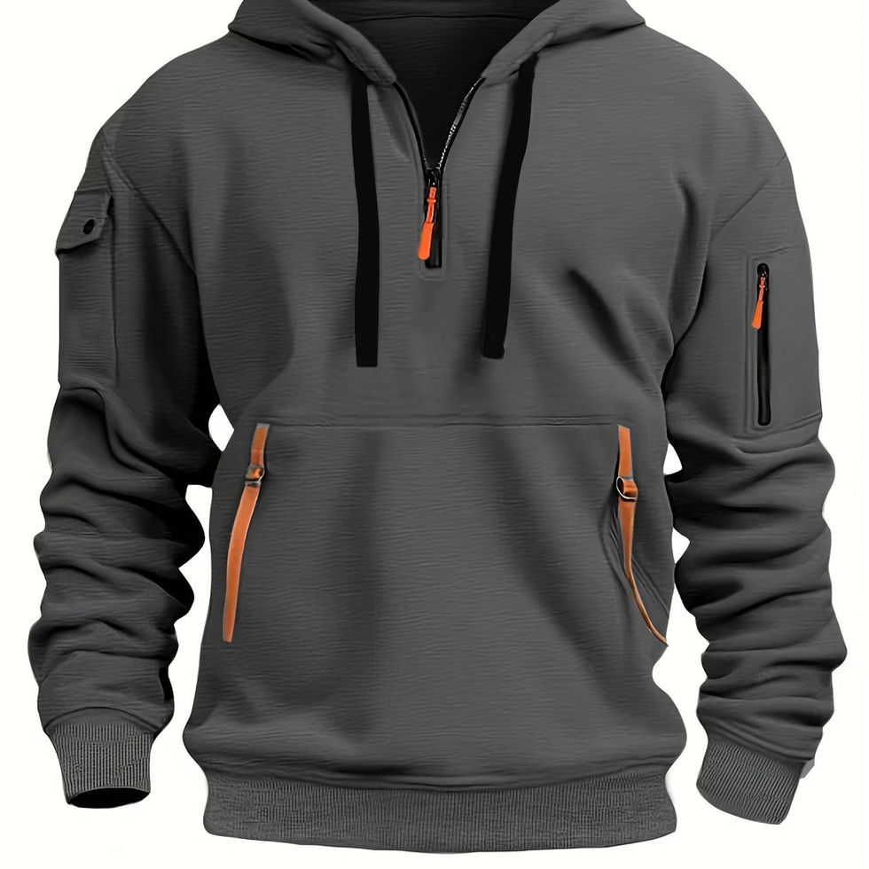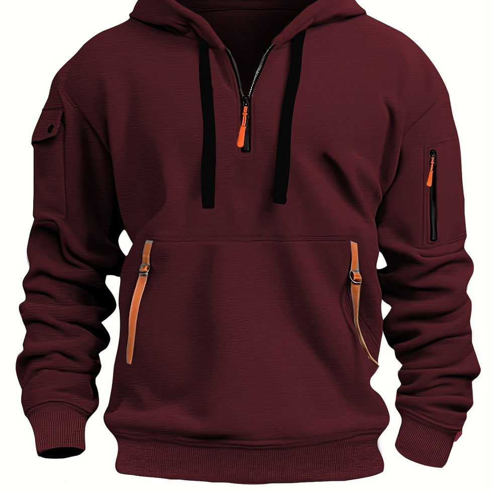 Men's Solid Hooded Long Sleeve Half Zip Sweatshirt With A Kangaroo Pocket And M