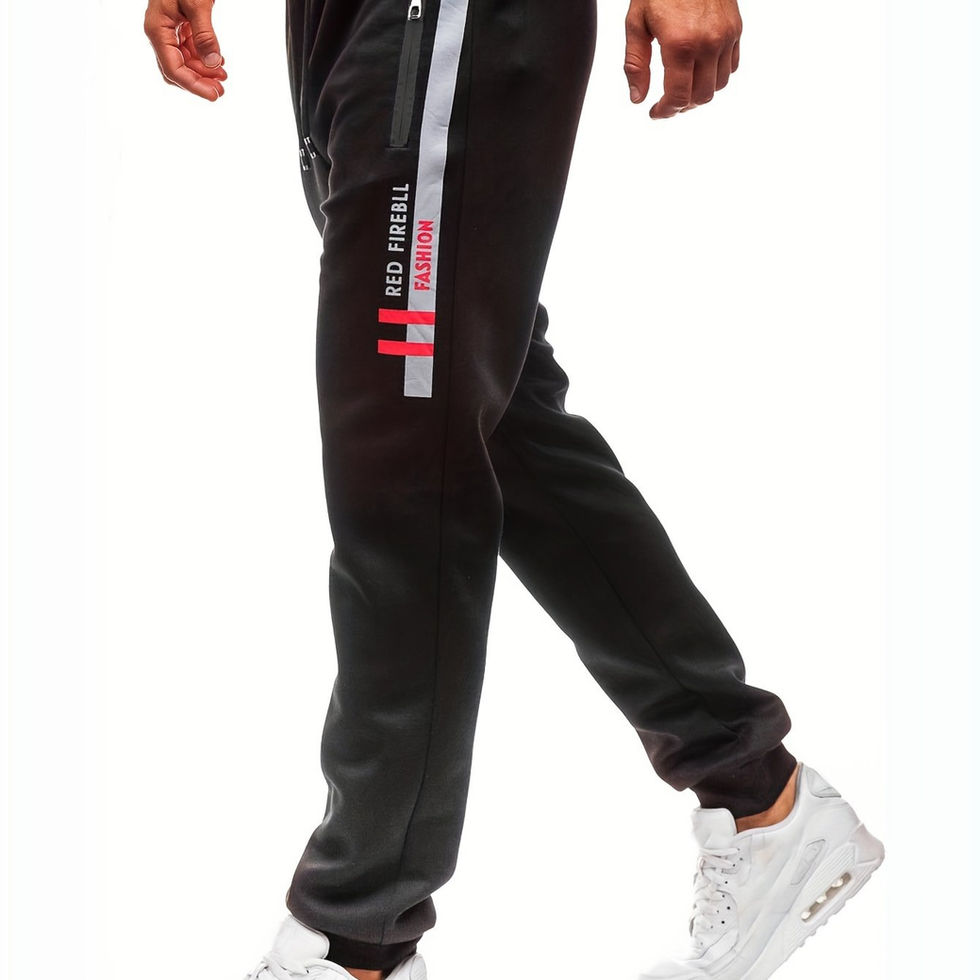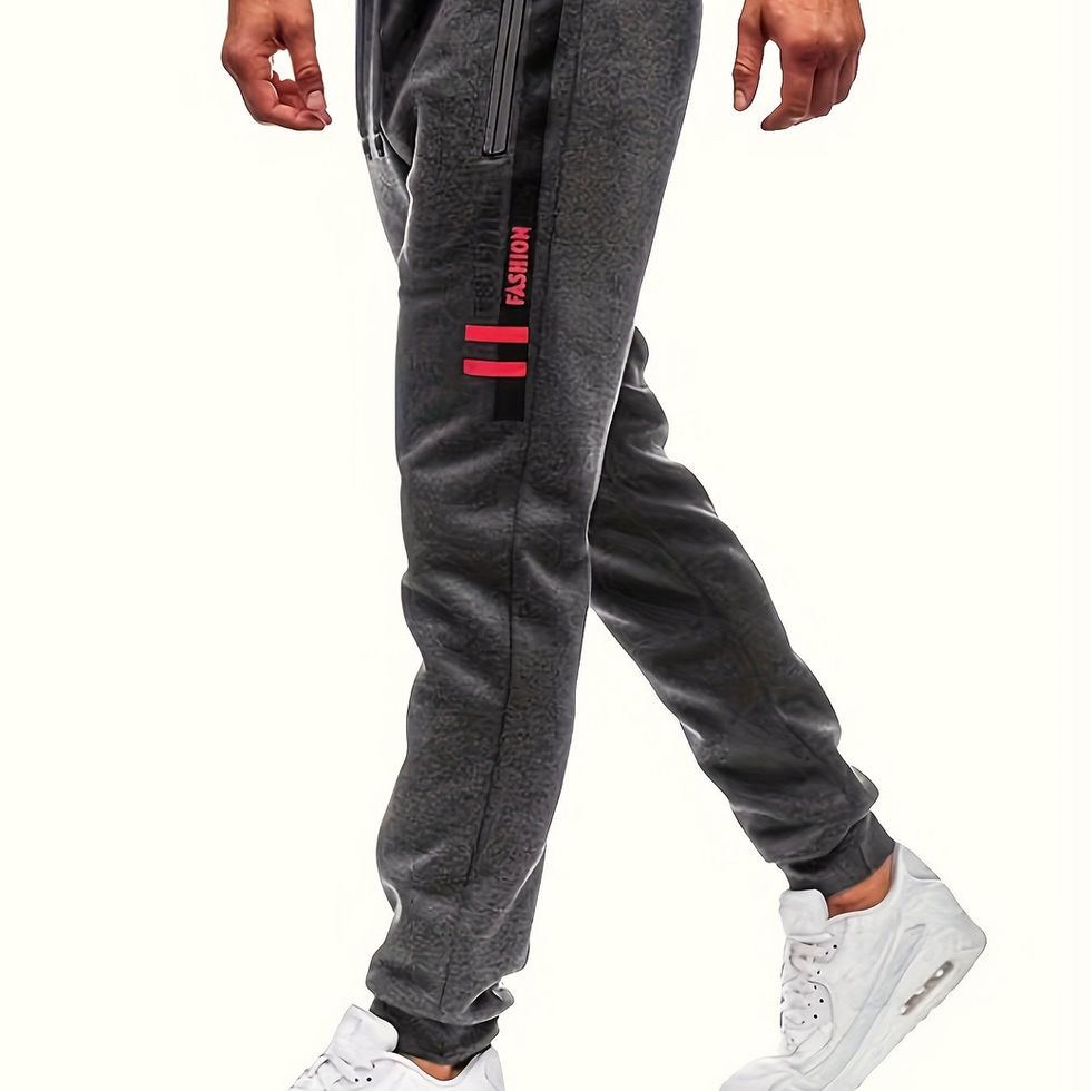 Men's Sports Trousers with Pocket Zipper Design and Printed Casual Sweatpants