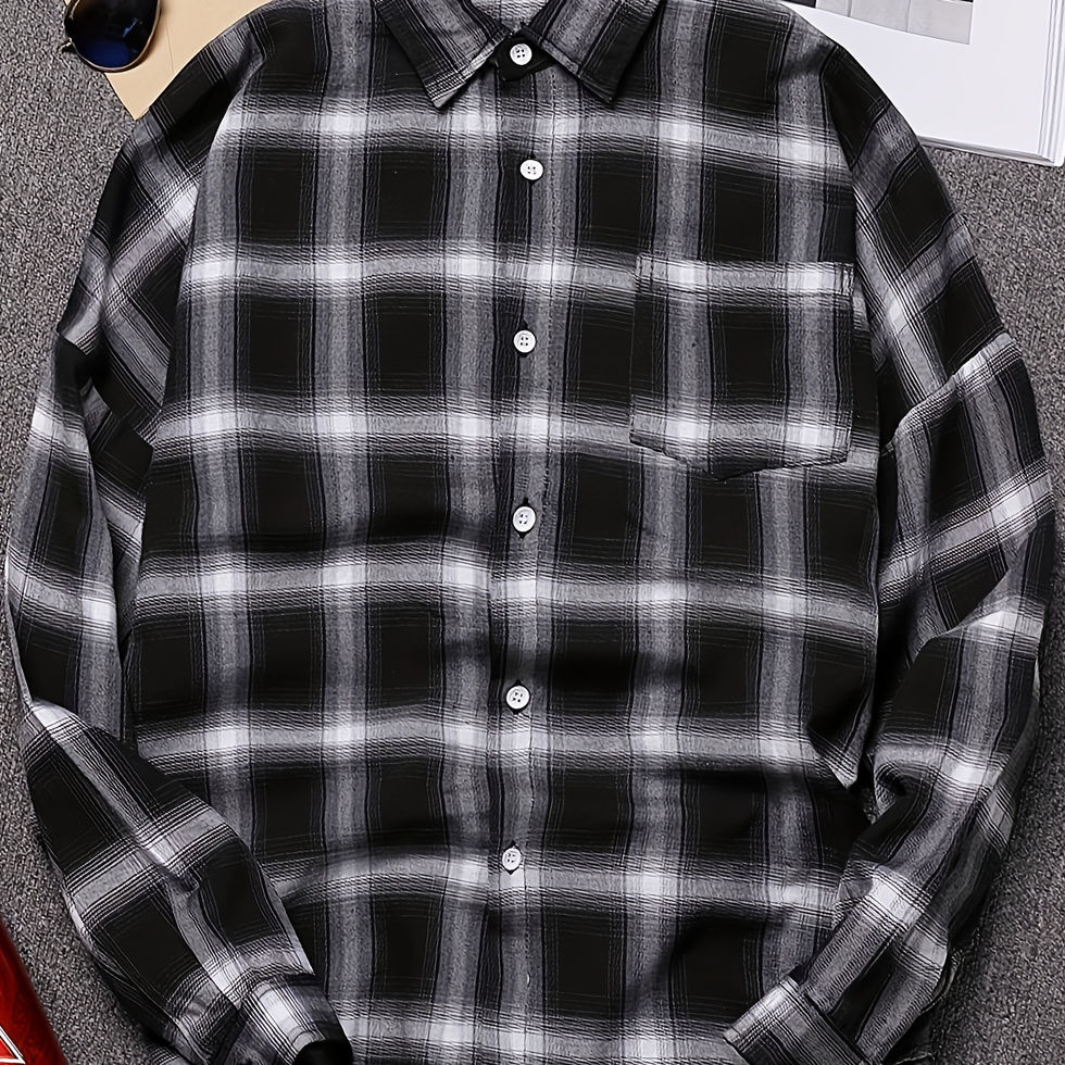 Plaid Casual Collared Button-Up Shirt for Men and Women, Spring Summer Autumn S