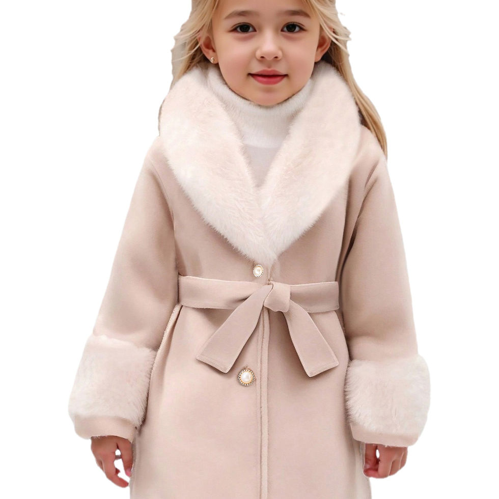 ' Princess Winter Coat with Faux Fur Hood & Bow Belt - Beige V-Neck Long Sleeve
