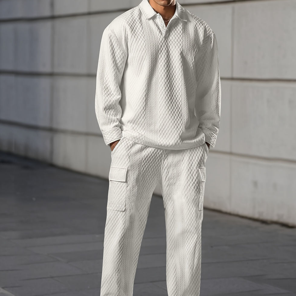Size TZ1174# Summer Men's Textured Shirt and Long Pants Set