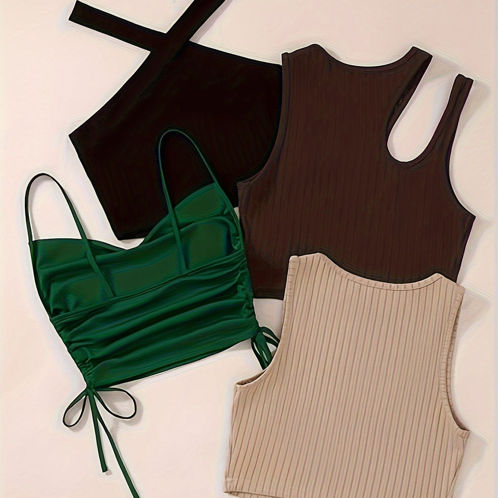 Solid Color Crop Top 4 Packs, Spaghetti Strap Drawstring Top & Cut Out Tank Top