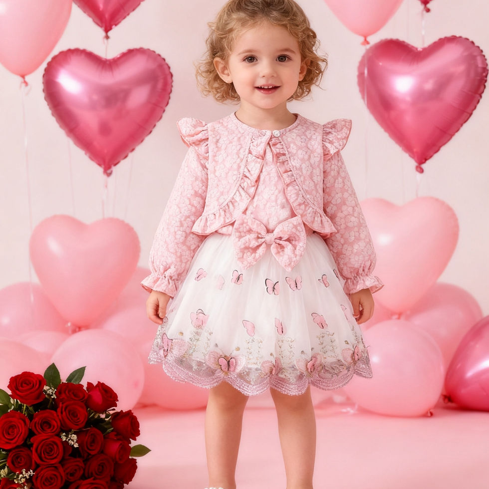 Stylish Casual Girl Butterfly Design Long-Sleeve Ruffle Hem Crop Top + Sleevele