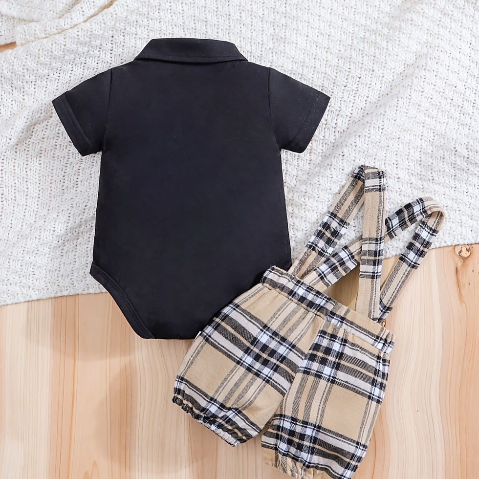 Summer Cartoon Bear Plaid Embroidered Polo Shirt Collar Bow Triangle Hooded Rom