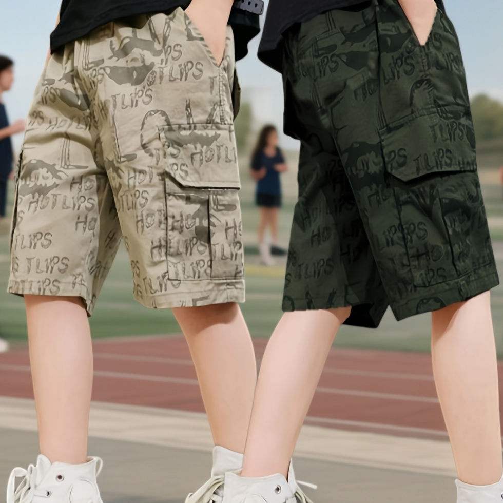 Two-Pack ' Summer Printed Cargo Shorts in Pure Cotton, Shorts, Youth Shorts, Pl
