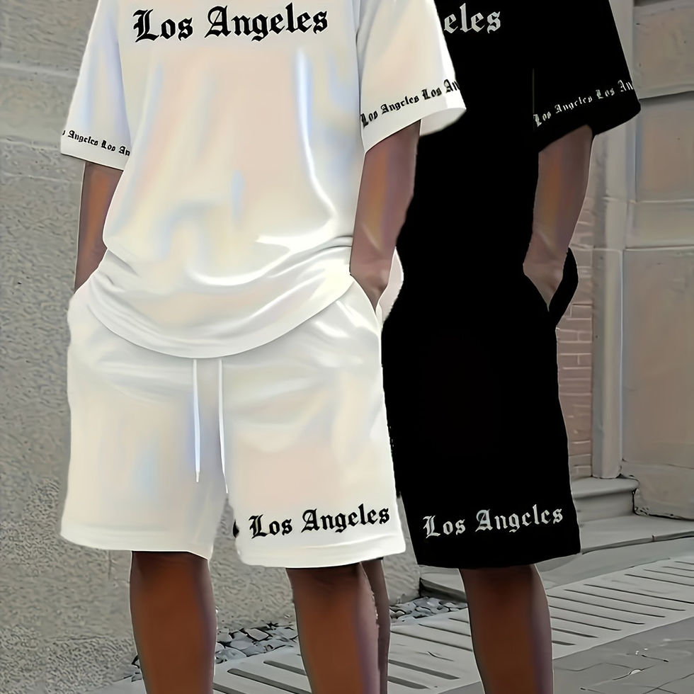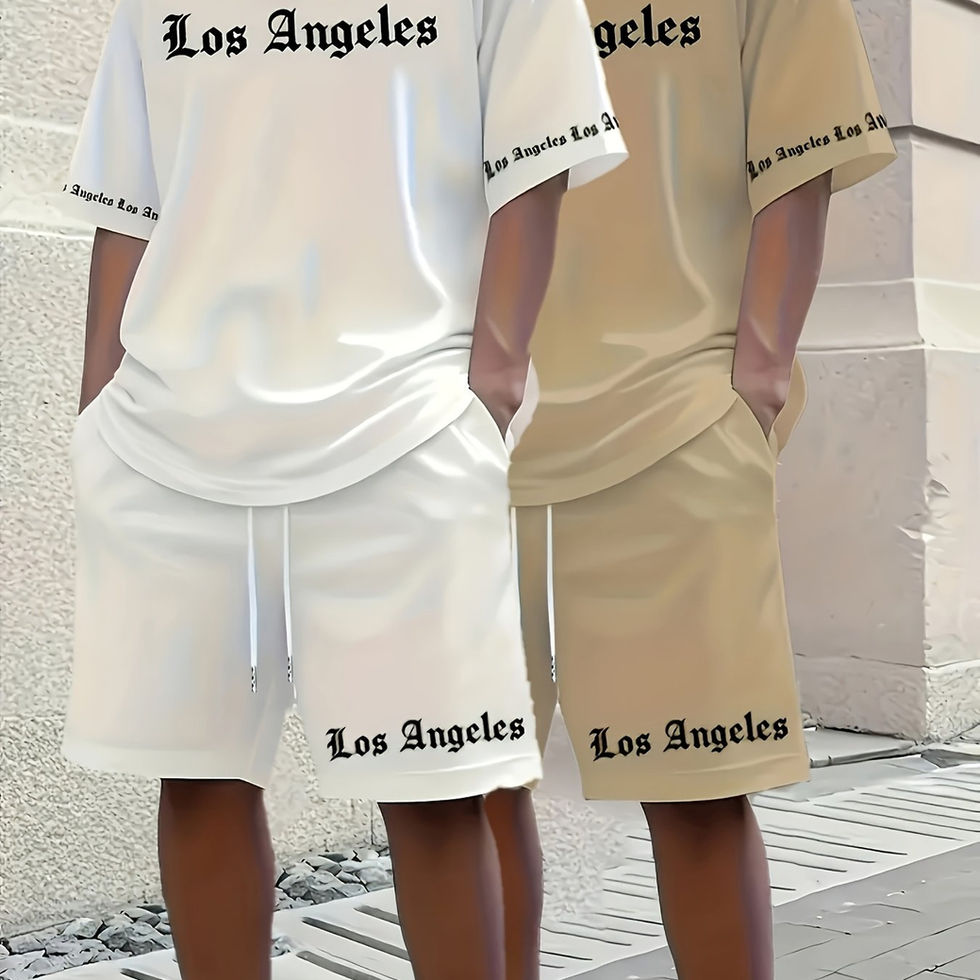 Two Sets of 2 Men'S Casual T-Shirt Short-Sleeved Shorts Suits, Los Angeles Word