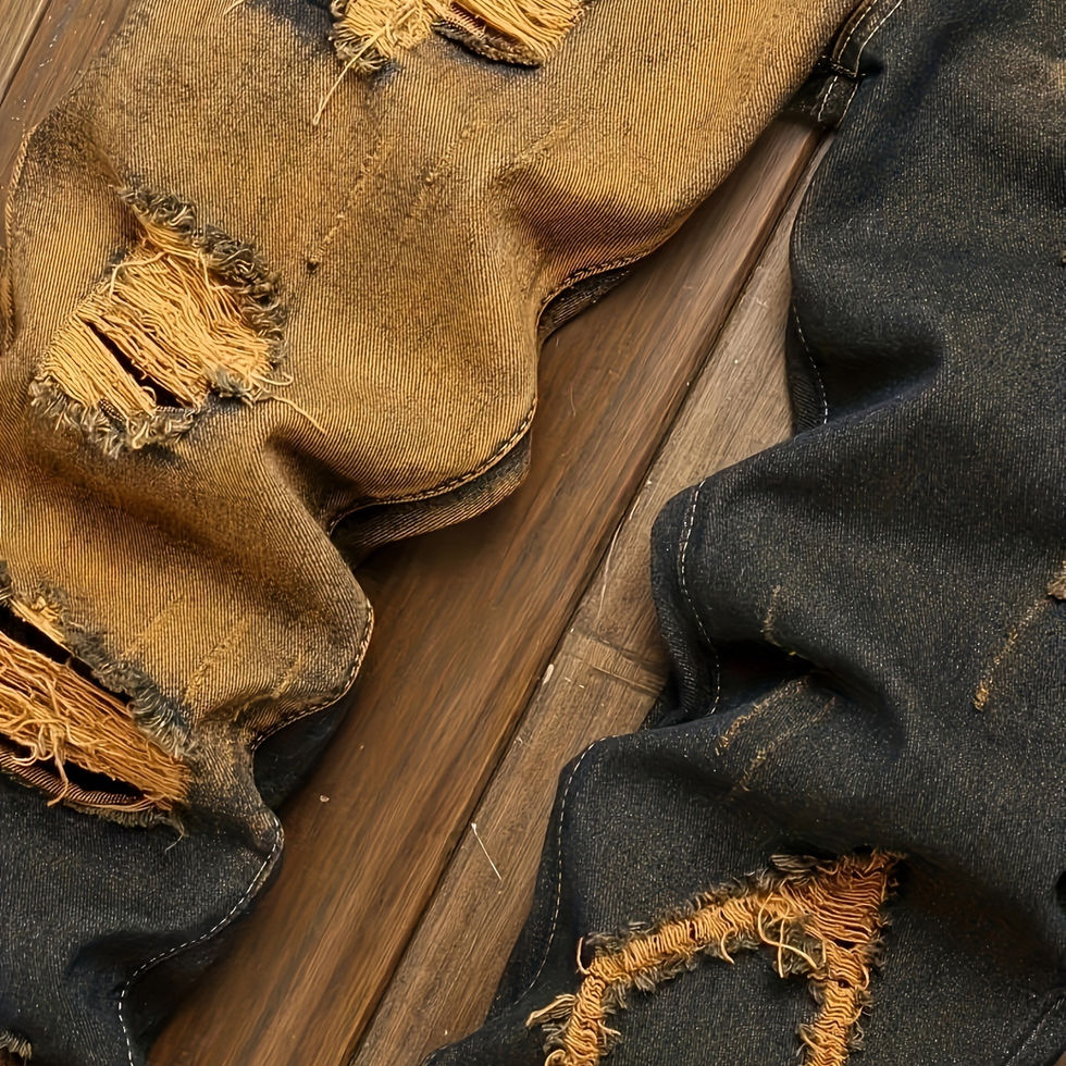 [Vintage Streetwear Jeans] Vintage Streetwear Men's Ripped Jeans - Mid-Rise, No
