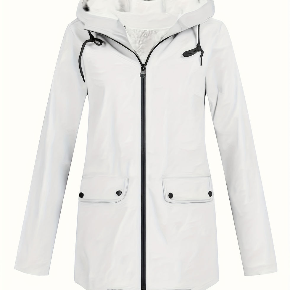Warm Plus Size Solid Coat - Casual Hooded Long Sleeve Zip Front Coat for Fall &