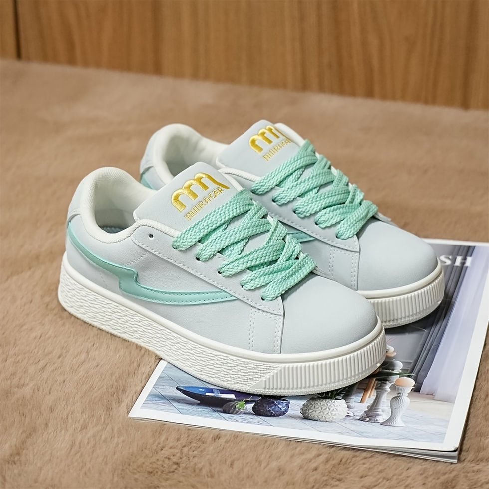 Women's Low-Top Sneakers - Lightweight Synthetic Cover Lace-Up Shoes with Thick