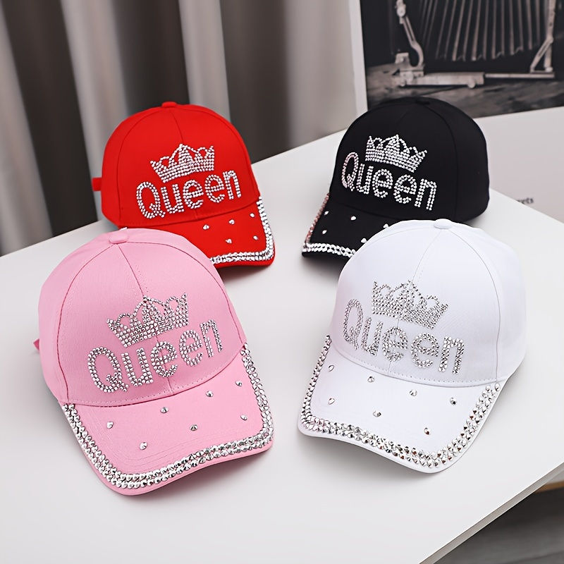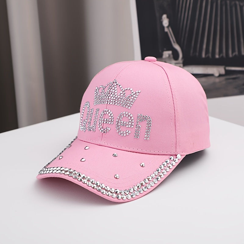 Women'S Rhinestone Baseball Cap with Crown Design, Adjustable Punk Style Street