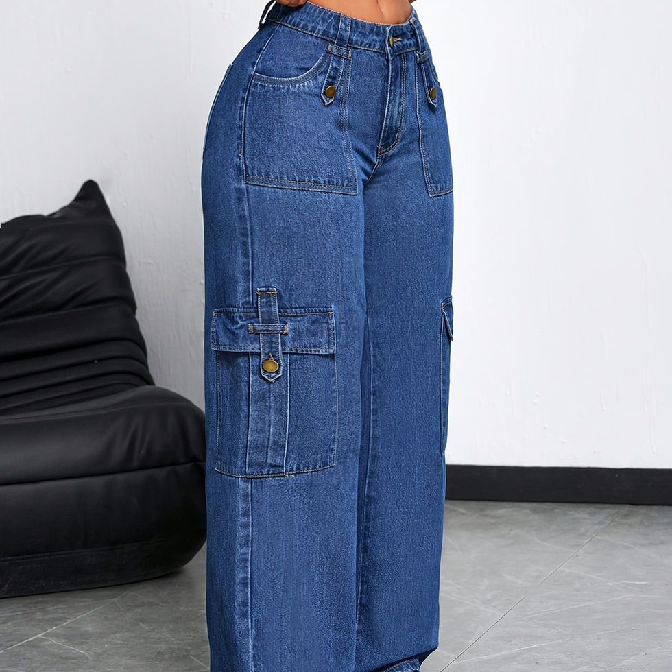 Women's Stretchy Wide-Leg Jeans - Workwear Pants with Multiple Utility Pockets,