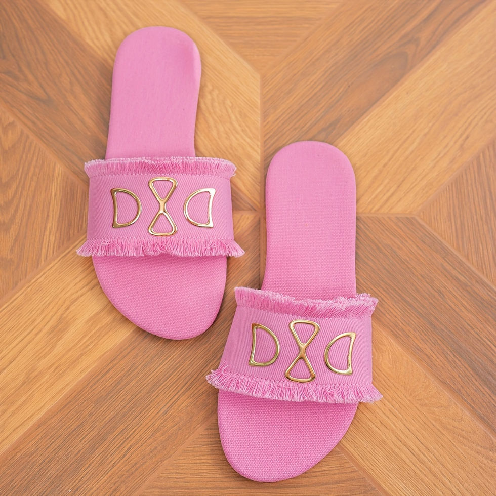 Women's Summer 2025 Fashion Slide Sandals - Black Flat Open-Toe Slides with Gol