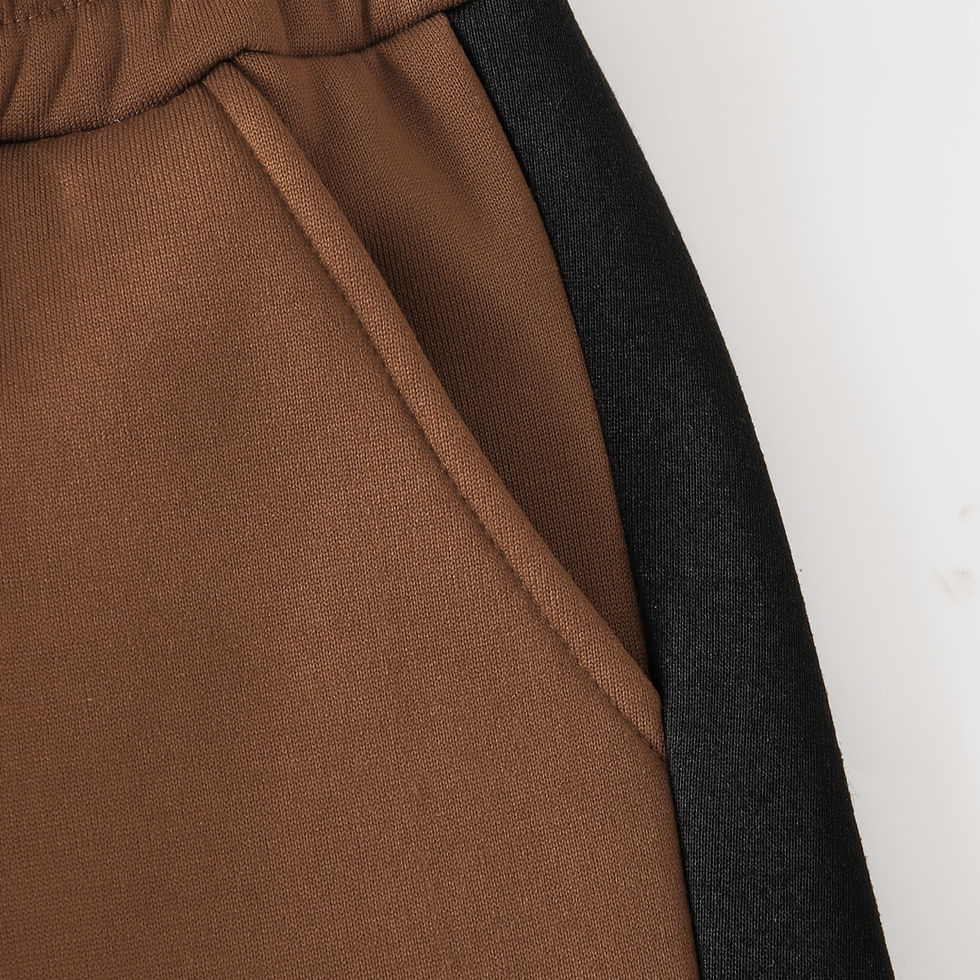 Youth 2pcs Trendy Sportswear Set: A Bold Brown, Black & White Color Block Hoode